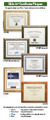 We offer a full line of certificate, photo and document plaques. Various combinations joining your document and an engraved plate are available. Contact us with what you have in mind and we'll share with you what is possible.