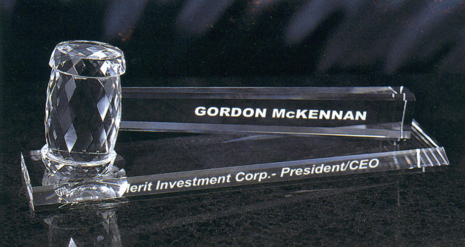Stunning Crystal Gavel - #A-1001 - 10" w x 3.25" h, Base is 11.5" w x 2.75" d x 5/8" h, Blue velvet gift box included. $243.61 each
