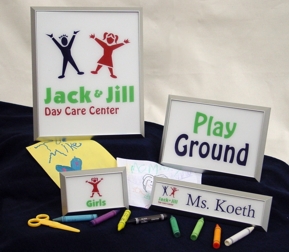 We create signage every day for our clients. From the basic to the complex, with or without a frame, we can provide you with quality signage you'll be proud to hang in your building. We engrave most of our signage, including ADA signage, in-house, cutting production turnaround time substantially. Contact us with your project details and we'll be happy to provide a quote for you.