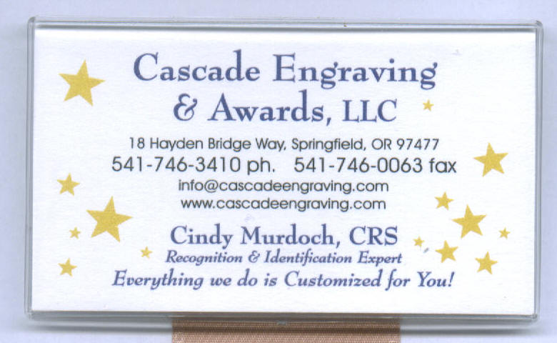 We use logos on nametags every day. If you would like to add your logo to your nametag, simply mail or scan a photo of your logo and e-mail it to us in a .jpg format. There is an $45.00 one time additional charge for converting your logo to the engraving format, and add $3.00 per nametag when logos are engraved. Once your logo is converted for use on our engraving machine, we can then use your logo for any engravable project in the future. Your logo can be easily resized for use on plaques or small signage, among other items.
