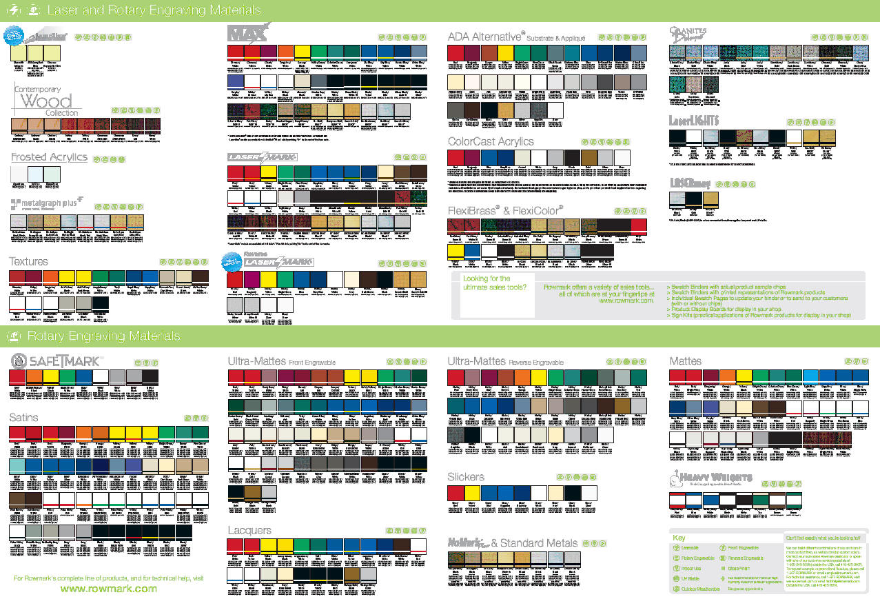 Every day, we engrave plastics in some way, shape or form. We are familiar with using phenolics, flexible plastics, acrylic, ADA braille substrates and appliques, cutting out shapes and many other processes. As you can see from the above photo, plastics come in a large variety of color combinations, shapes & sizes. Using reverse engraved plastics, where we engrave from the back into one color, leaving the engraved areas clear, we can also create custom coloring by paint filling. You will find a color chart at the bottom of this page.
